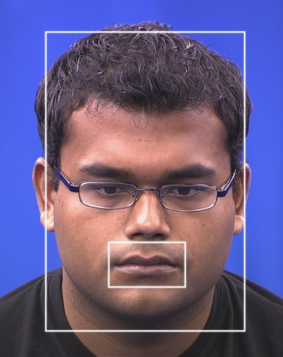 A pre-processing stage of feature extraction identifies the region of the image that corresponds to the mouth.