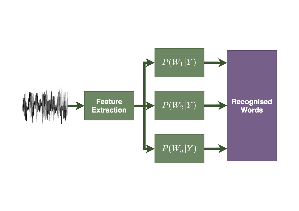 The task of a speech recogniser is to determine the most likely word sequence given a new sequence of (acoustic) feature vectors.