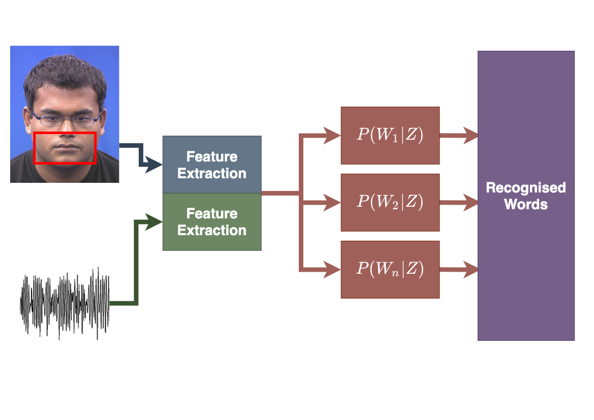 Late integration builds two separate models and weights their probabilities to provide the recognised word sequence.