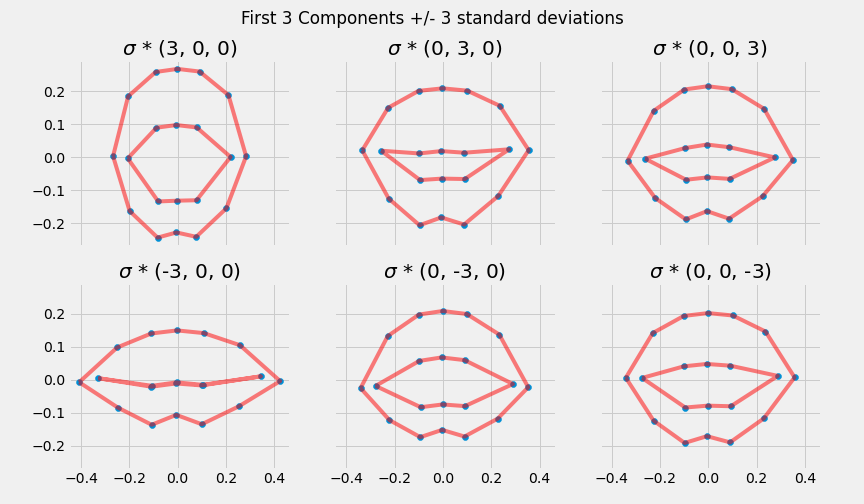 Given the aligned shapes, compute a model that describes the variation in shape.