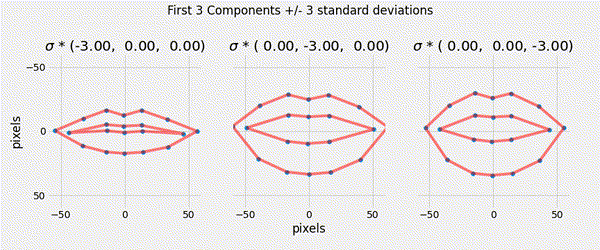 A compact linear model of the variation in the shape can be found using Principal Component Analysis (PCA). The model is of the form: