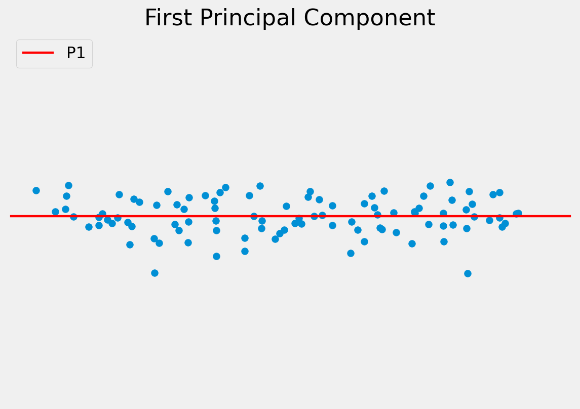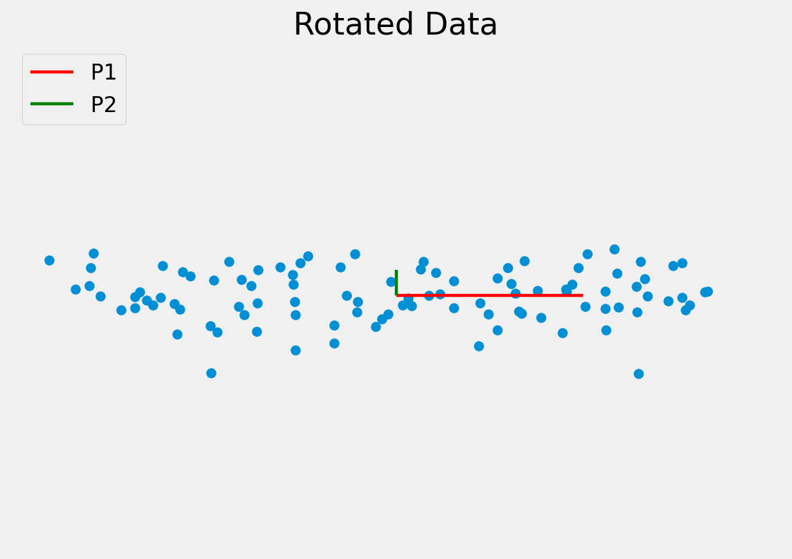 The original data can be approximated as some distance along P1 from the centre of the data cloud.